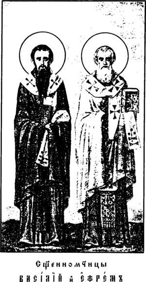 🎚Епископ Василий, приходит в Херсонес и обращает многих идолопоклонников к истинной вере. Другие язычники, ожесточенные его деятельностью, хватают его, нещадно бьют и изгоняют из города.