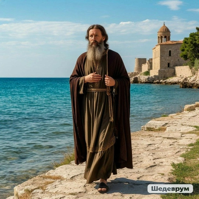 🌄Святой поселился в пещере. Там он усердно молится об обращении ко Христу херсонесских язычников.