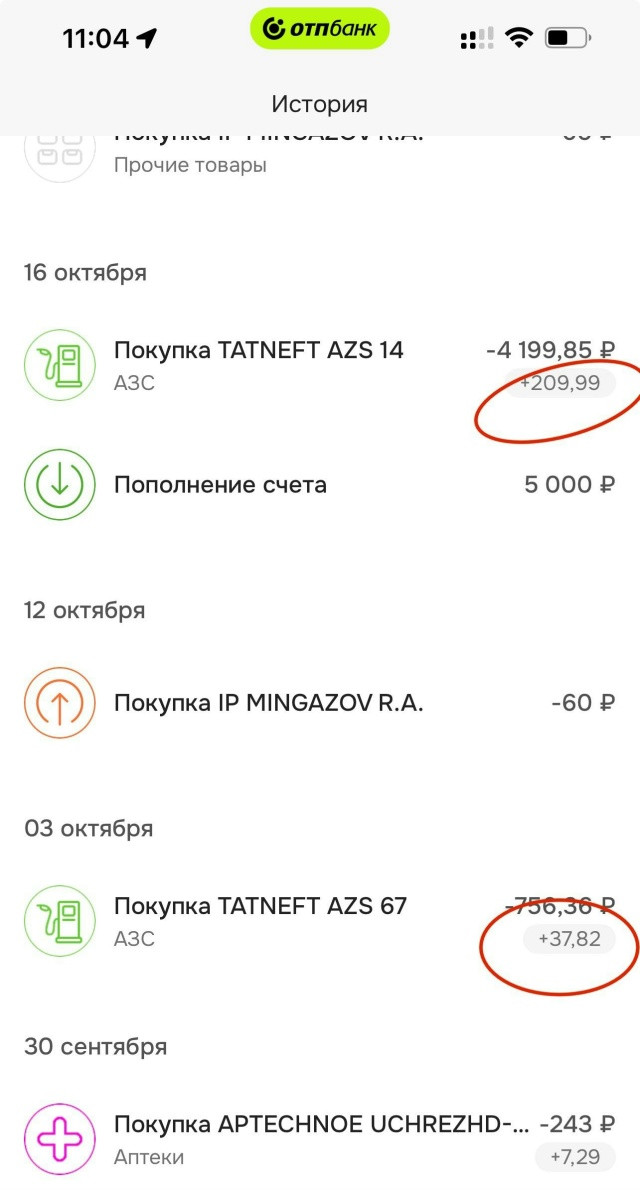 А еще я плачу картой ОТП банка, потому карта дает кэшбэк на 11 категорий, и каждый месяц там можно выбрать АЗС в качестве повышенной категории.
