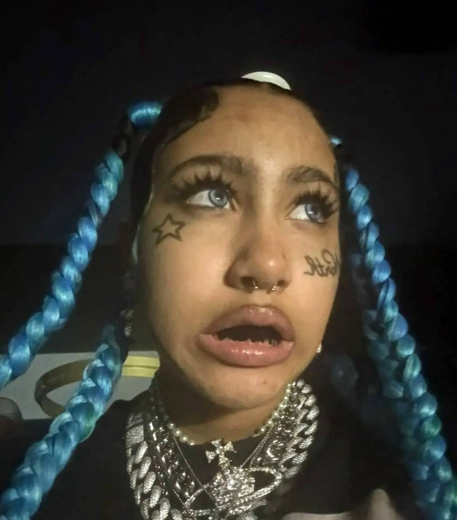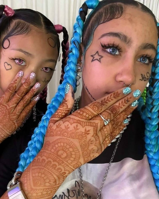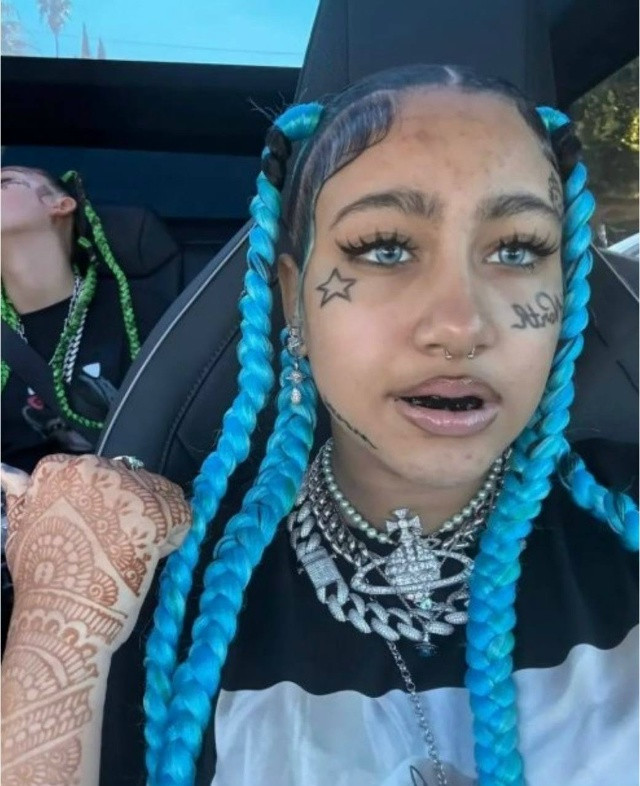 12-летняя Норт Уэст опубликовала снимок с татуировками на лице, пирсингом, синими волосами и яркими линзами.