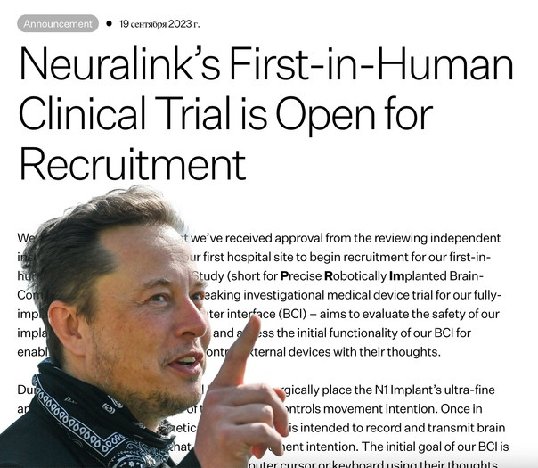 Neuralink Илона Маска заявила, что пациенты с параличом из-за травмы шейного отдела спинного мозга или бокового амиотрофического склероза могут претендовать на участие в первом клиническом испытании чипов, вживляемых в мозг.