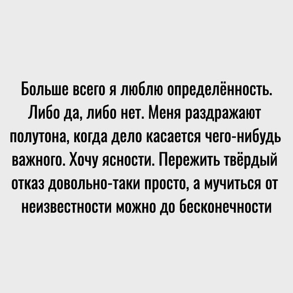 Больше всего я люблю определённость.