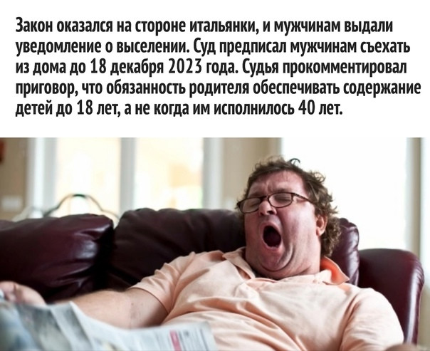 Великовозрастные дети не должны жить с родителями. У каждого свой режим дня, питания, моральные принципы, уклад жизни и привычки. Чтобы никому не нервничать, не мотать нервы лучше отдельно.