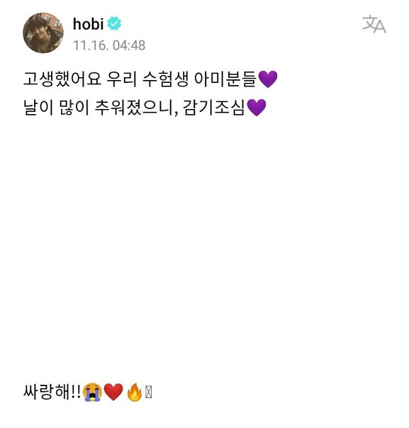 Хоби оставил сообщение на Weverse
